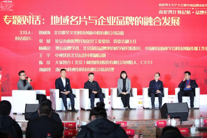 最后,由刘威海主持“地域名片与企业品牌的融合发展”专题对话。延安市南泥湾开发区党工委委员、管委会副主任张斌,奥运品牌学者、北京国信品牌评价科学研究院院长、中国科技新闻学会科技创新传播工作委员会会长杨曦沦,中视优选北京运营中心副总裁王宇,大家智合(北京)网络科技股份有限公司创始人、CEO陈彦,浙江中科视传科技有限公司总经理孙砺锋等5位嘉宾围绕中国品牌南泥湾计划的发展、南泥湾区域品牌名片的打造、南泥湾与企业的合作模式等话题进行交流研讨,进一步巩固南泥湾品牌建设的思想根基,坚定南泥湾产业转型升级和美丽乡村建设的信心决心。