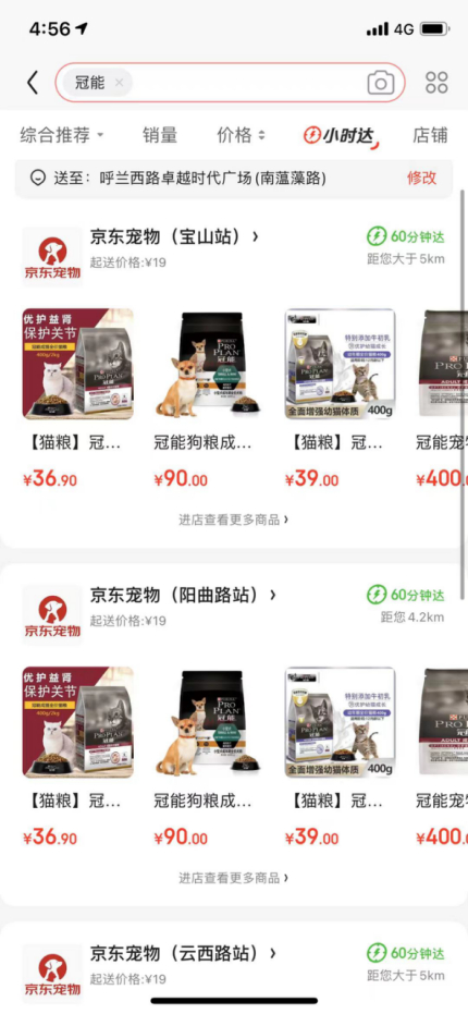 宠物前置仓则是京东宠物业务部推出的本地零售模式到家业务,它通过覆盖不同区域的“京东宠物”线上连锁门店,提供丰富的同城零售商品,以及一小时达的同城配送服务,让消费者得到更好的购物体验。京东宠物前置仓业务上线6个月以来,已经在全国24个省的45个城市完成布局,基于前置仓网络上线了1000多家“京东宠物”O2O门店,店内上架近千款爆款商品,3-5公里内配送时效可以缩短到47分钟,广受用户好评。未来2年内,京东宠物前置仓将上线超过10000家“京东宠物”O2O门店,通过精细化、品牌化运营,为用户提供更多、更快、更好的同城零售服务。