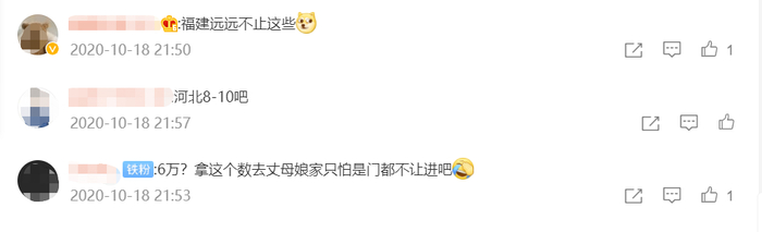 对于到底给多少彩礼,有网友认为,钱少怕是丈母娘连门都不让进。