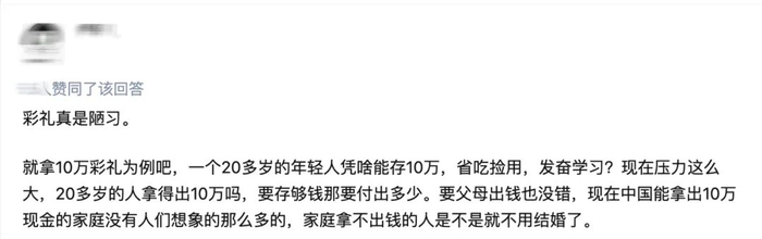 但是,有些网友认为彩礼是一种陋习,彩礼不仅影响年轻人,也影响着各个家庭。