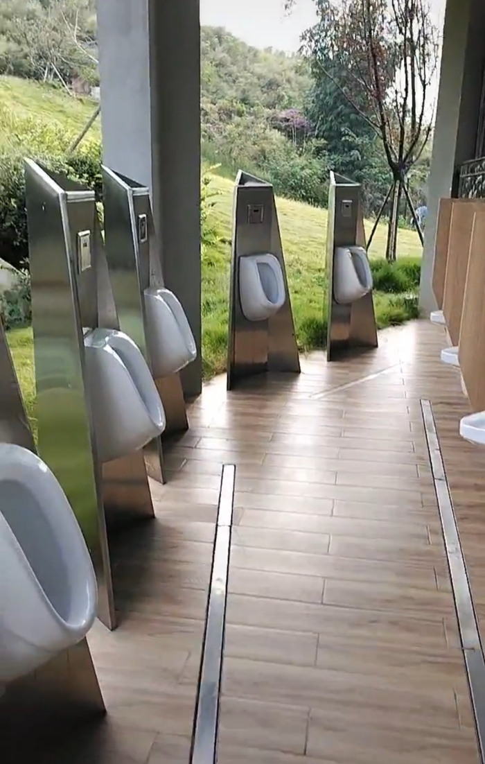 封面新闻记者在该名网友拍摄的视频中看到,男厕小便池正对一处草坡,无任何遮挡物,视频中可以看到小便池旁边便是女厕,还有不少女游客站在一旁聊天。