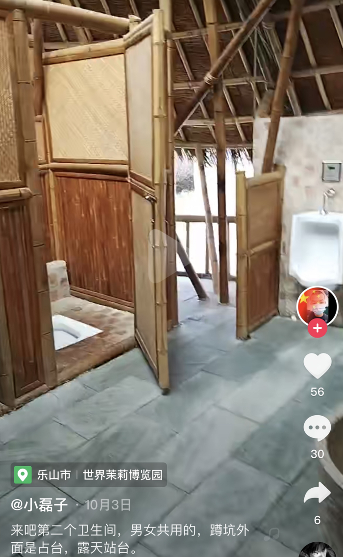 “我想上个厕所,可这能上吗?”10月3日,在四川乐山犍为县世界茉莉博览园内,网友“小磊子”在网上发布了一条视频,对该景区内一处“开放式”卫生间进行“吐槽”。