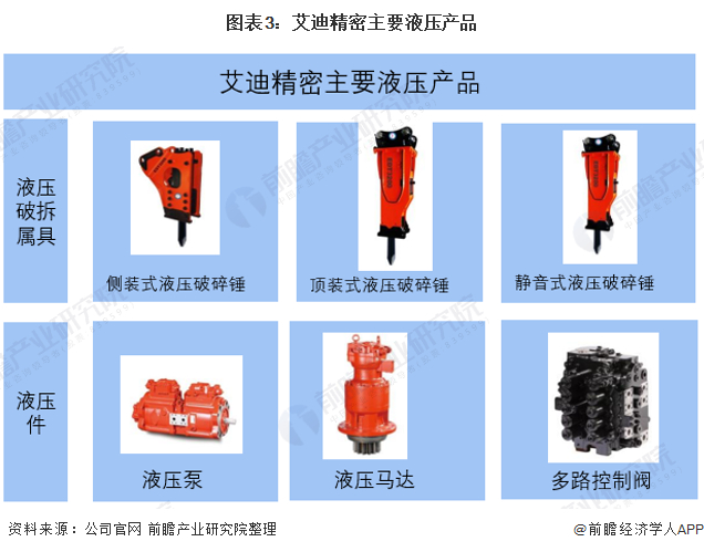 从产品线的品类来看,艾迪精密主营产品为液压破碎属具和液压件,包括液压泵、液压马达和多路控制阀;恒立液压的产品线则更为全面,包括液压油缸、液压油泵、行走液压阀、液压马达、工业液压阀和液压系统等液压行业全品类产品。