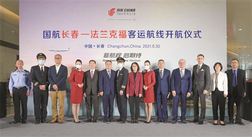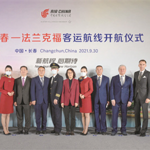 9月30日上午,长春市政府与国航在长春龙嘉国际机场举行国航长春—法兰克福开航仪式。吉林省相关部门、长春市委市政府、中航集团、吉林机场集团等单位的领导及行业嘉宾、权威媒体应邀出席了此次活动。当日中午12时50分,首航航班从长春龙嘉国际机场启程前往法兰克福。