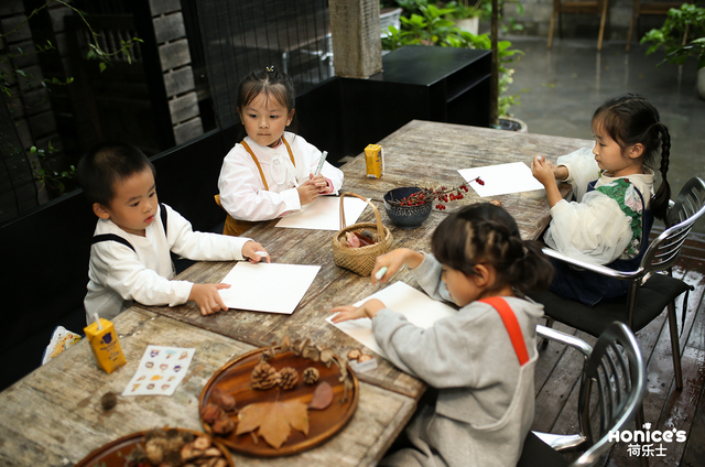 活动下半场,荷乐士带领孩子们利用采集到的树叶、坚果等各种原材料,化身小艺术家进行礼物创作。孩子们徜徉在大自然的怀抱里,发挥奇思妙想,动手实践,制作了专属的重阳节礼物,用行动表达了对爷爷奶奶们的爱意。