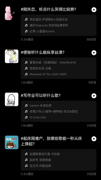 那么情绪价值,是如何通过音乐播放器来实现的?其实听歌过程中的情绪共鸣,很大程度上是体现在评论中。以往歌曲的评论,是使用文字回答一首歌的问题;而波点的话题,则是在用音乐回答生活中的问题。