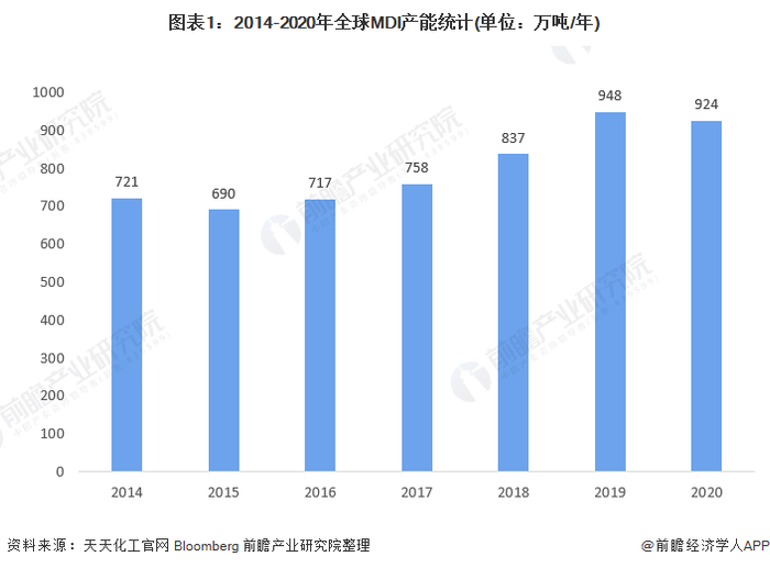 ——2020年全球MDI产能为924万吨/年