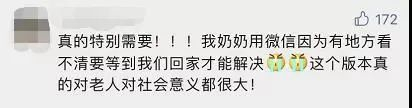网友们表示:“真的特别需要! 奶奶用微信有地方看不清,只能等到我们回家才解决。”