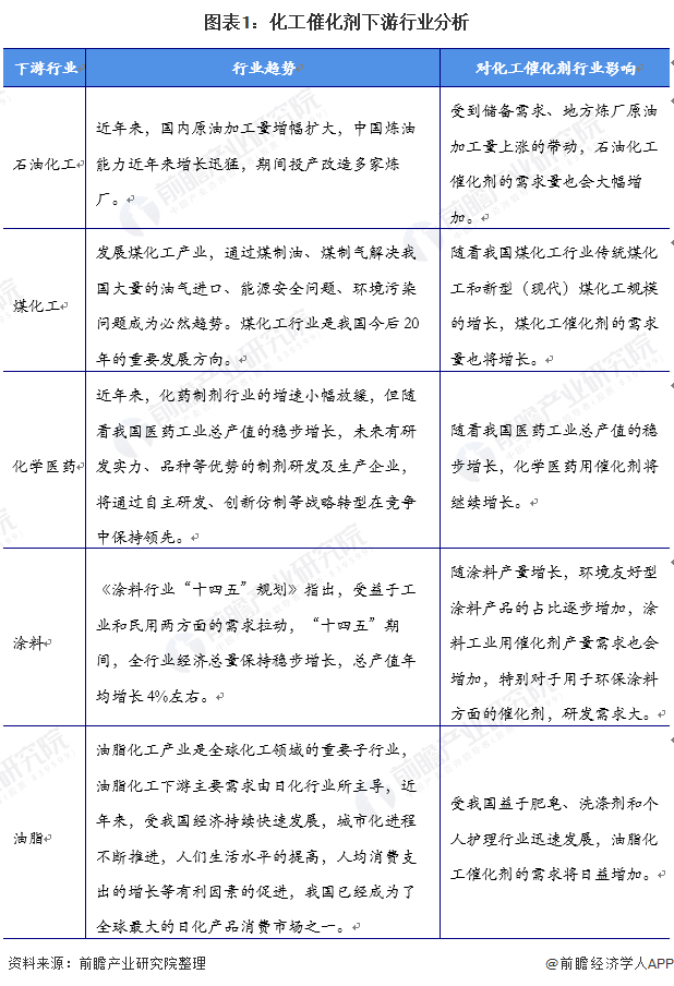 本文核心数据:化工催化剂产能、化工催化剂产量、下游行业分布