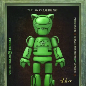 众所周知,歌曲《青花瓷》原作词人为方文山,作曲者则为周杰伦,而此次推出的限量版《庞克猫史汀》,即是以青花瓷副歌“天青色等烟雨”中的天青色为主色调,且公仔胸前护甲铁片也有着“青”字,是《青花瓷》的联名作品,使得自公开信息以来,持续受到多方关注。