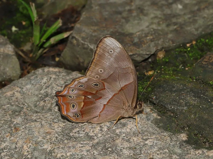中型蝴蝶,翅膀淡黄褐色,具有眼状斑纹。喜欢在竹林里活动,整个秋季都能见到,在上海地区,松江佘山、天马山等地是它们主要栖息地。
