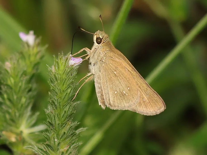 小型蝴蝶,翅褐色,后翅腹面中域具数个白色小斑点呈圆弧状排列。隐纹谷弄蝶外观不艳丽,但秋季数量较多,飞行迅速,喜欢访花吸蜜,公园绿地里经常可见。