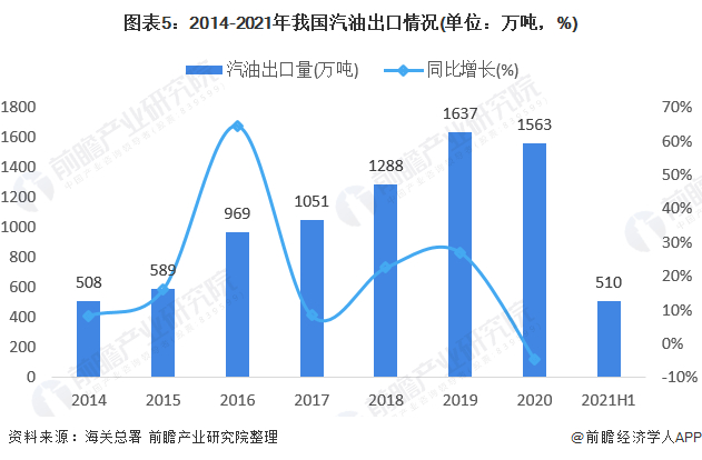 原标题:2021年中国汽油行业市场供需现状及进出口情况分析 汽油出口占主导地位【组图】 来源:前瞻产业研究院