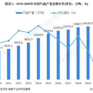 2010-2019年我国汽油产量稳定增长,2019年产量为14120.7万吨,2020年由于突发性公共卫生事件的冲击,导致市场需求大幅下滑,成品油产量也随之受到影响。同比增长1.9%;2020年1-6月,我国汽油产量为6070.8万吨,同比下降12.8%。2020年全国汽油产量为13179.7万吨,环比下降7.03%。全年来看,中国成品油产量低位出现在第一季度,由于2020年春节假期延长,疫情蔓延令众多炼厂开工负荷迅速下滑,主营单位和山东独立炼厂均在一季度迎来年内低点。2-3月份因疫情全国处在封锁状态,3月份汽油产量最低,后随着复产复工,汽油产量逐渐增加,基本恢复至往年同期水平。