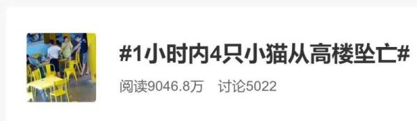 10月11日,福建龙岩,4只小猫接连从高楼坠下。该事件引发大量网友关注,成为微博热搜。
