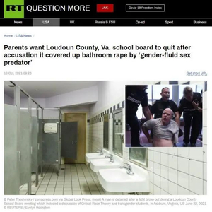 据今日俄罗斯电视台(RT)13日报道,美国弗吉尼亚州劳登县学区董事会(LCSB)卷入了一场与学生家长有关厕所性别政策的争论,该董事会被指控掩盖一名“性别流动”青少年在厕所强奸的罪行,如今这名青少年被控已经两次实施性侵犯。