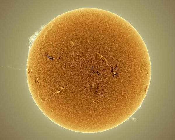Hα波段下的全日面像(摄影:AlanFriedman)