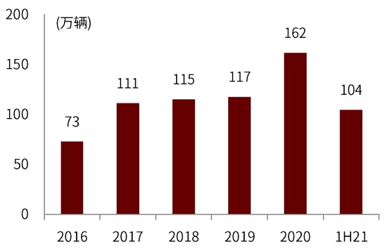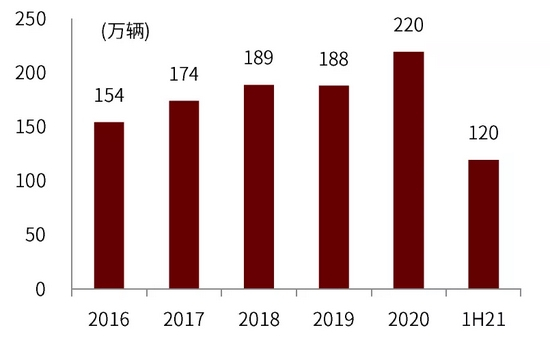 图表:2016年-1H21重卡销量