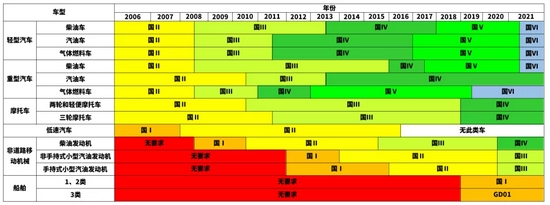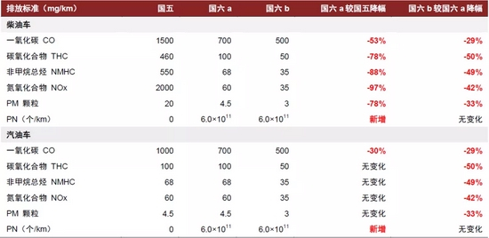 图表:各车型排放标准历年来不断升级