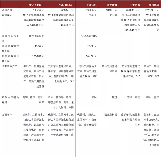 图表:蜂窝陶瓷国内外供应商对比