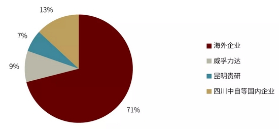 图表:2017年汽油机三元催化剂海外企业与国内企业市场份额