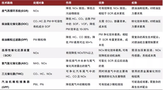 图表:国六标准重柴油后处理技术路线对比