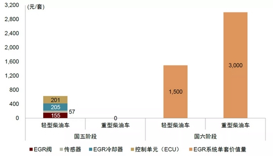 图表:国五与国六时期EGR系统单套价值量对比