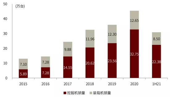 图表:2015年-1H21非道路移动工程机械销量