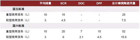图表:柴油车中尾气处理部件蜂窝陶瓷用量