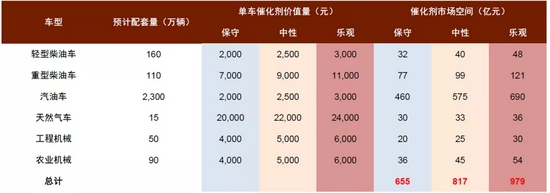 后处理催化剂量价双升,国六切换背景下市场空间可达约800亿元人民币