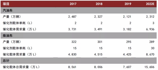 图表:催化载体总需求规模测算