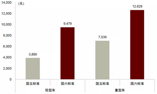 图表:国五切换国六后轻型、重型柴油车后处理系统单车价格分别提升144/79%