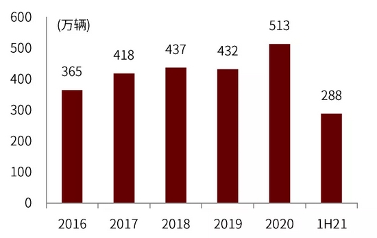 图表:2016年-1H21轻卡销量