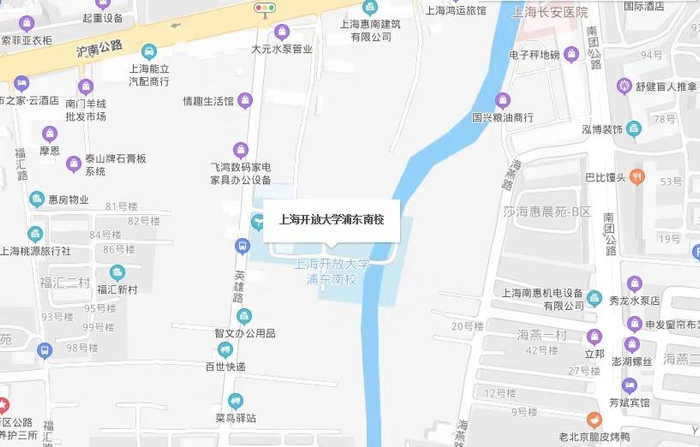 参考路线:地铁16号线惠南站2号口出站→乘坐公交1082路从拱极路南祝路(公交站)上车坐5站至英雄路沪南公路(公交站)下车→步行至上海开放大学浦东南校。