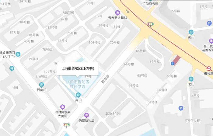 参考路线:地铁11号线枫桥路站3号口出站→步行至上海市普陀区社区学院。