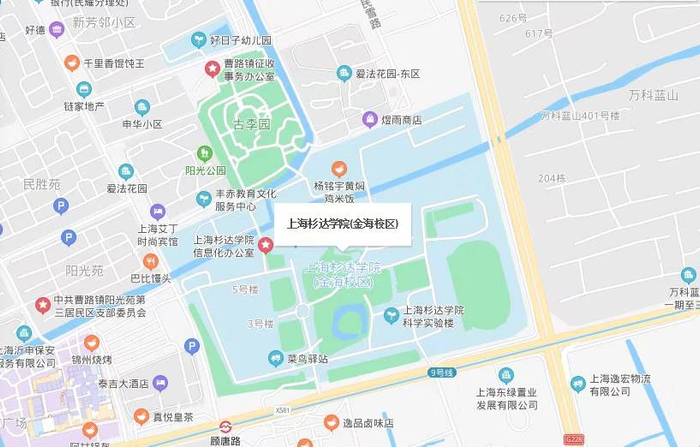 参考路线:地铁9号线顾唐路站1号口出站→步行至上海杉达学院。