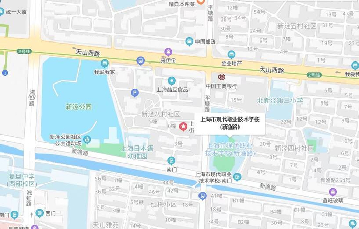 参考路线:地铁2号线淞虹路站2号口出站→步行至上海市现代职业技术学校(新渔校区)。