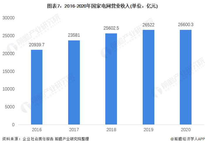 近年来,国家电网的营业收入保持稳定增长趋势,但是营收增速有所下降。2020年,国家电网公司全年营业收入26600.3亿元,同比增长0.3%。