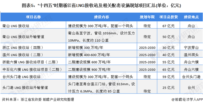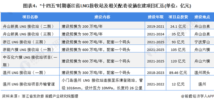 2、“十四五”期间,浙江省重点推动LNG接收站设施建设