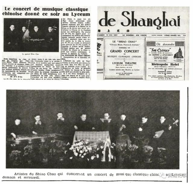 法文《上海日报》刊载霄兆国乐团音乐会的部分广告、文章和演出