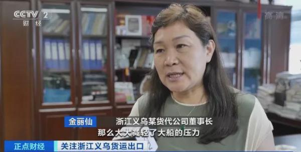 浙江义乌某货代公司董事长 金丽仙:我最大的优点就是自己有箱子,我们向中集直接买箱,已经订了一万个箱子。现在小船都能把它运力解决掉,大大减轻了大船的压力,也大大缓解了当下生产企业出口难的问题。