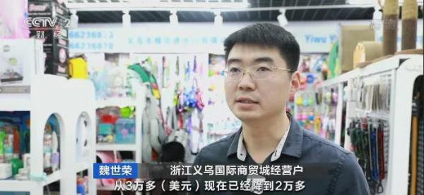 浙江义乌国际商贸城经营户 魏世荣:从上个月开始,我们美线的价格下降幅度很大,从3万多美元已经降到2万多美元,运费降了,舱位也有了。所以现在客户开始催我们,及时给他出货,而且现在的订单也比以前多了,不会再受运费问题的顾虑。