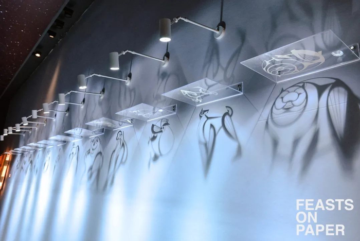 将深厚的陕西传统民俗剪纸文化进行提取再设计,尝试呈现方式的多样化,通过山海经、十二生肖等图形是用现代化的表现手法创新剪纸艺术,打破人们心中对于陕西剪纸艺术带有的“古旧”“刻板”“无趣”的定义,尝试新的造型,当代的“影”的展陈,把剪纸作品带入空间中与观者交互。