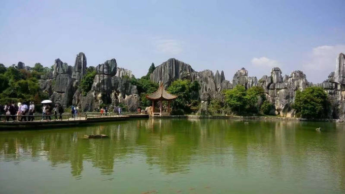 云南石林位于云南省昆明市石林彝族自治县境内,是我国5A级旅游景区,被联合国教科文组织评为“世界地质公园”。