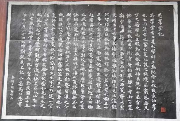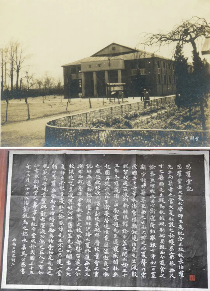 思群堂落成后,著名书法家、大夏大学校友马公愚为思群堂手书了《思群堂记》碑。碑曰:“大夏师生于聚首庆叙之余,感悼先生不已,乃建一堂,颜曰思群,庶登斯堂者,瞻其轮奂恢祟,如见先生之风范焉。”《思群堂记》碑历经六十余载风云变幻,已被损坏,不知所终。直至2012年上海图书馆古籍部在整理修补馆藏碑帖时,才发现了《思群堂记》碑的拓片。2013年 6月1日,学校举行《思群堂记》碑重镌落成仪式。《思群堂记》碑才得以再次出现在思群堂里。