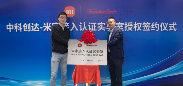 今日,小米IoT平台总经理王博与中科创达集团副总裁、智能终端事业群总裁吴栋堂在中科创达北京总部——创达大厦分别代表双方签署了《米家认证实验室授权服务协议》并为首个米家接入认证实验室——中科创达-米家接入认证实验室揭牌。