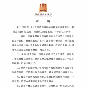 酒店回应:未发现被偷拍视频外泄