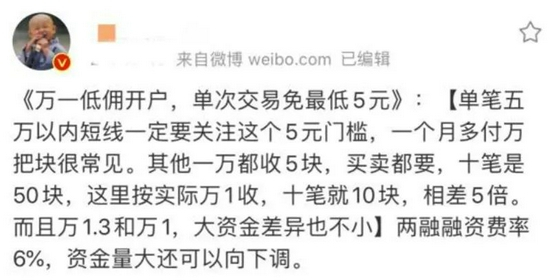 可见,“万一开户”一般仅指股票买入净佣金,而非股票卖出时佣金及其他各项费用。