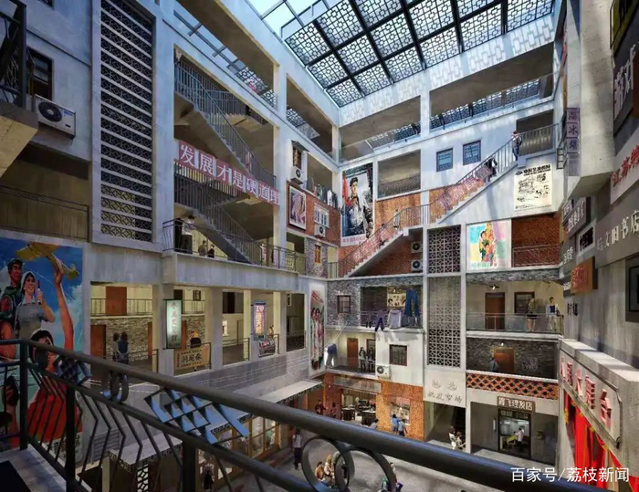 公交站、小人书摊、旧书店、轮船码头、民政局……四处的人声鼎沸沿着中庭拢聚成人间烟火,再现属于过去的那些浓墨重彩。