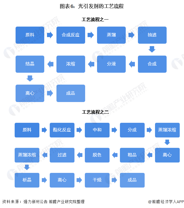 光引发剂又称光敏剂或光固化剂,是一类能从光(一般为紫外光)中吸收一定波长的能量,经光化学反应产生具有引发聚合能力的活性中间体的分子,光引发剂对于光刻胶的感光度和分辩率有重要影响。光引发剂的工艺流程如下: